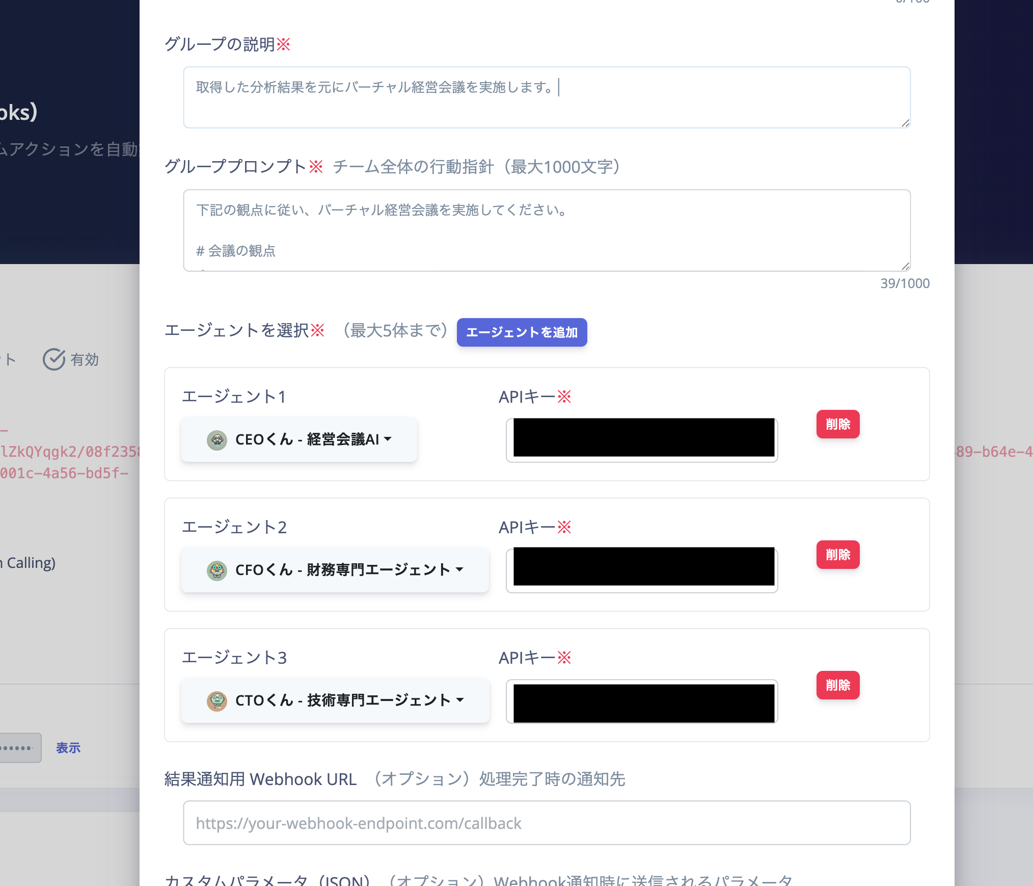 miiboで作成した複数のエージェントのグループを呼び出し、自律的なタスクを依頼することが可能です。