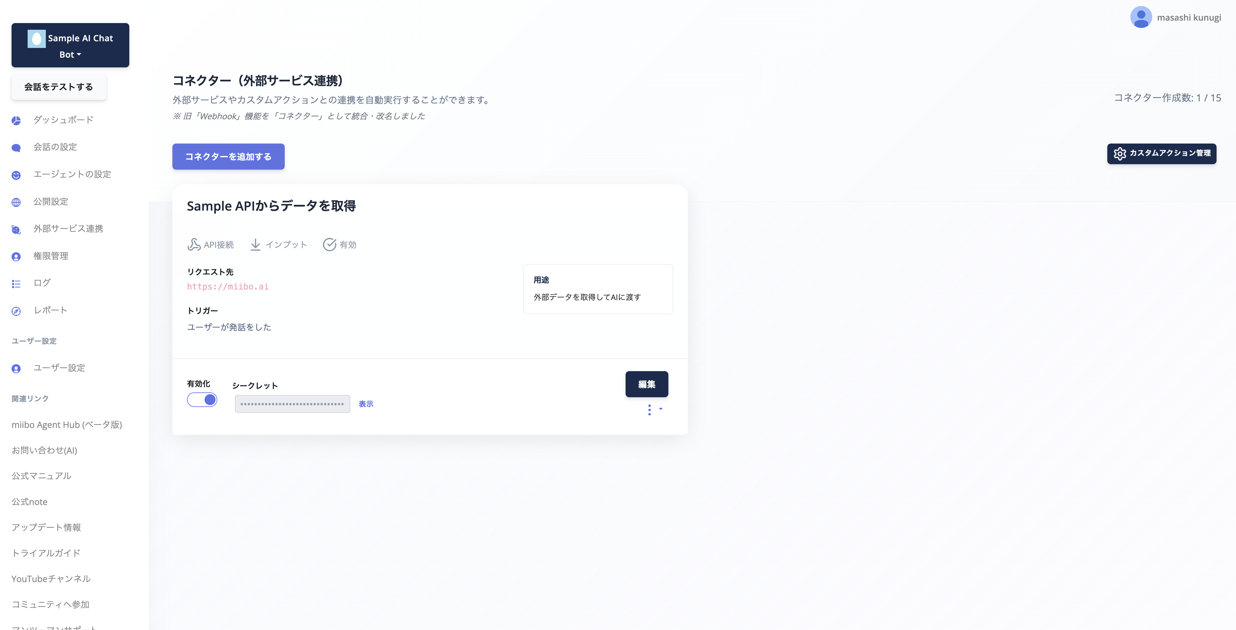 これらの機能拡充により、本来のWebhook(イベント駆動型の通知機能)という名称では、実際の機能を正確に表現できなくなっておりました。 そこで、「外部サービスやカスタムアクションなどの様々な機能をエージェントを接続する機能」という実態をより適切に表現するため、「コネクター」という名称に改めることといたしました。
