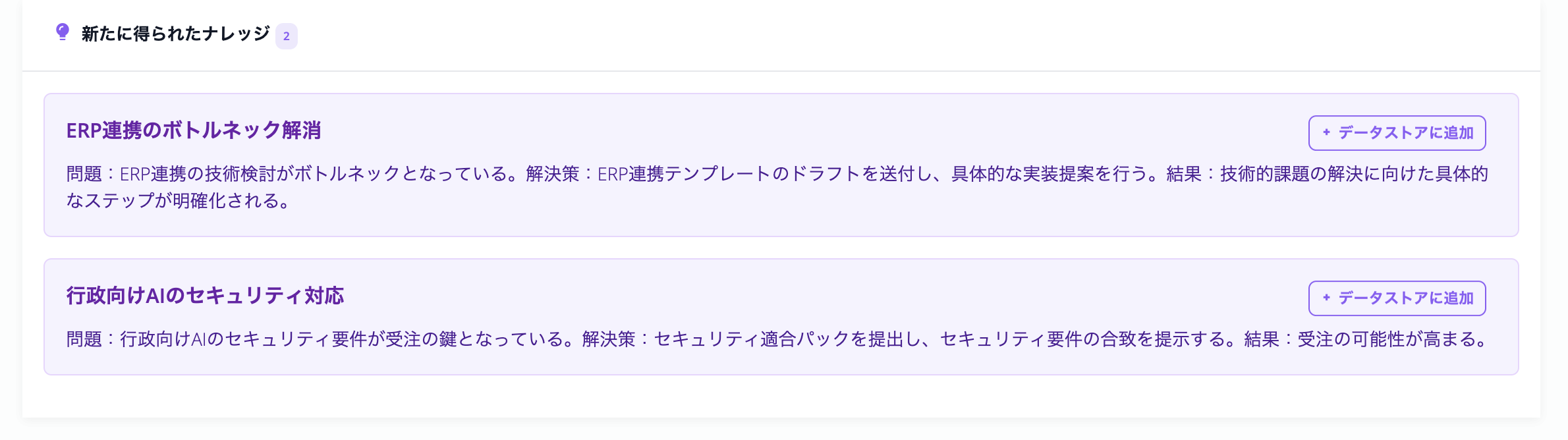 「データストアに追加」ボタンより、素早くナレッジデータストアへ追加することも可能です。