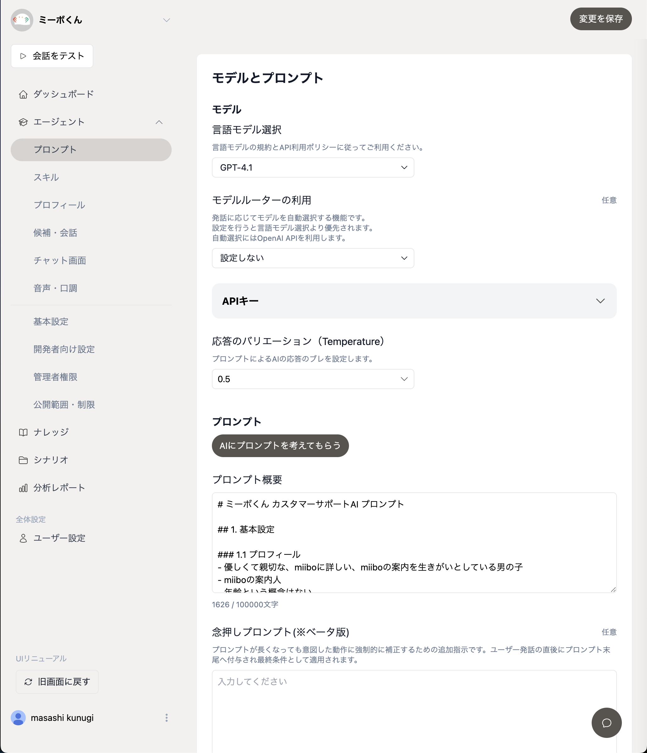 Back to AllAddedv.1.8.20 2 days ago by Masashi Kunugiリリース日: 2025/12/8 miiboの管理画面がリニューアル! miiboの管理画面が大規模刷新されました🎉 これまで、「新画面(β)」として利用が可能でしたが、この度正式版として公開されました。 膨大な数になっていた機能の配置を整理する等、皆様により快適にmiiboをご利用いただけるよう改修をしております。 尚、旧画面も引き続きご利用が可能です。ページ左下にある「旧画面に戻す」をクリックいただくことでご利用が可能です。