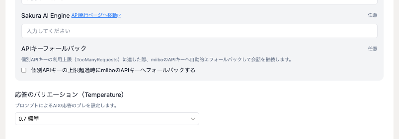この設定を行うことにより、APIキーが利用上限で使えない場合においても引き続き会話を提供することが可能になります。
