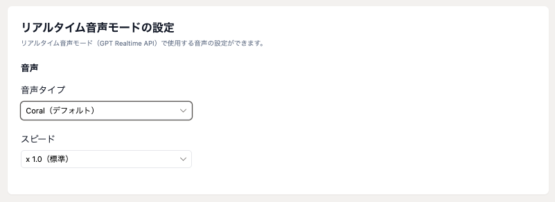 リアルタイム音声モードの音声・スピード設定が可能に!