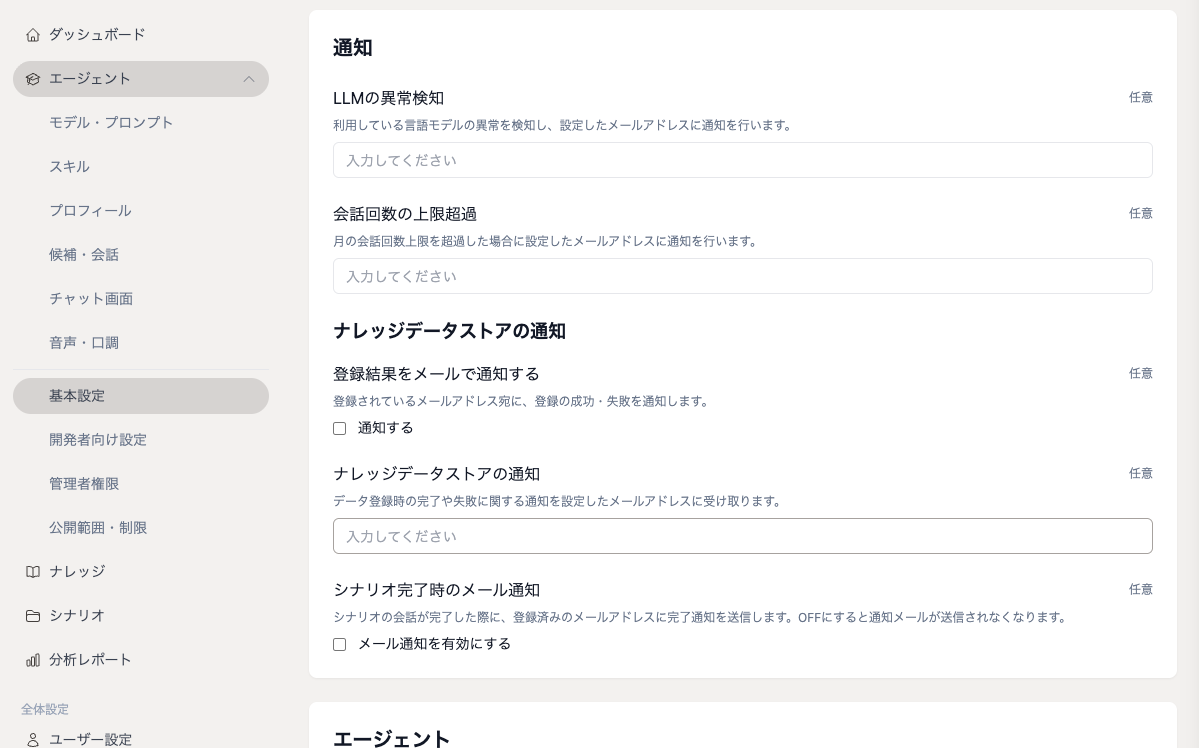 管理画面の エージェント/チャット画面 の設定項目から設定可能になります。
