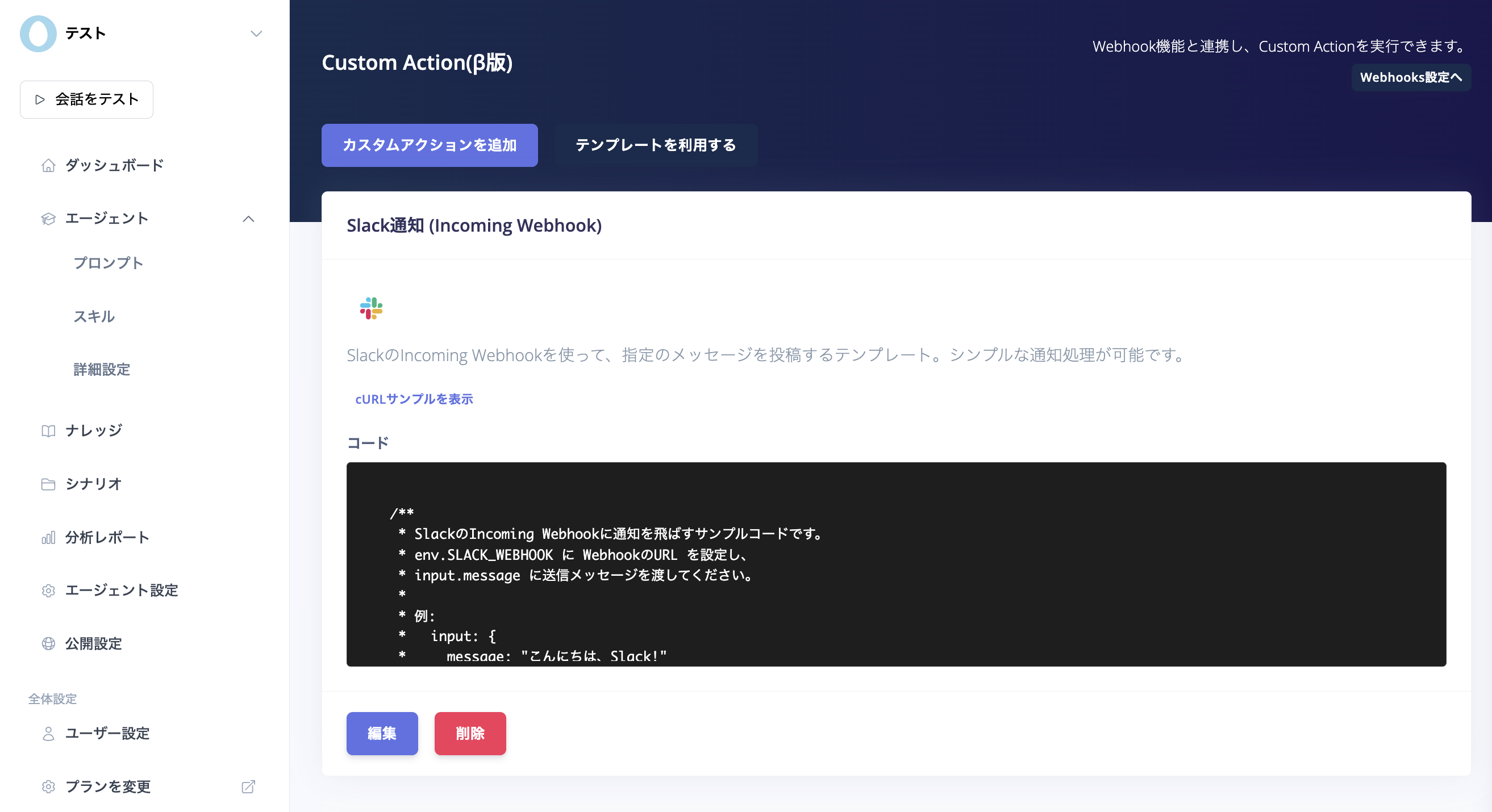 - エージェントの応答をトリガーとした実行