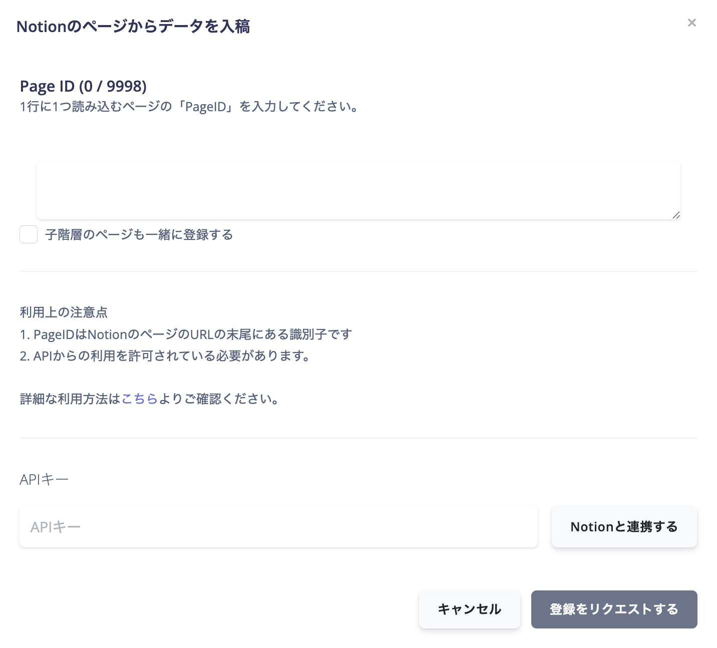ナレッジデータストアにページIDを登録することで、コンテンツがナレッジデータストアに追加されます。